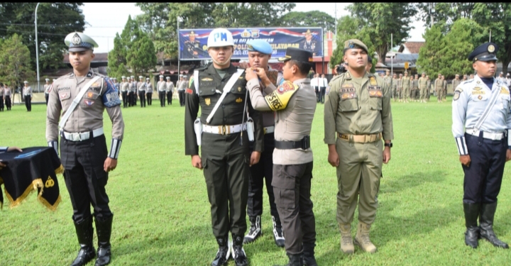 Hadir di acara tersebut personel gabungan Polri, TNI, Satpol PP, Dinas Perhubungan, Dinas Kesehatan, dalam rangkaian apel Kapolres Bondowoso secara simbolis menyematkan pita operasi kepada perwakilan personel sebagai tanda dimulainya Operasi Zebra Semeru 2025.