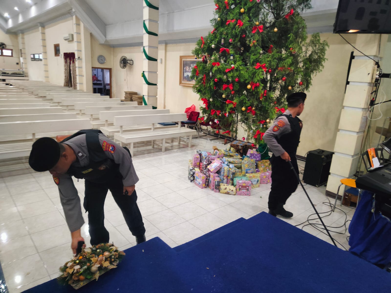 Satuan Samapta polres menyisir seluruh area gereja, meliputi ruang utama gereja, halaman, tempat parkir, hingga jalur keluar masuk jemaat. Langkah ini dilakukan untuk memastikan tidak adanya benda mencurigakan serta meminimalisir potensi gangguan keamanan selama perayaan Natal berlangsung.