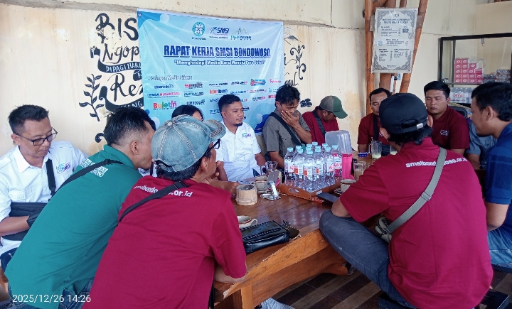 Bondowoso, Nusantarapost.id – Dipenghujung tahun 2025 SMSI Kabupaten Bondowoso mengadakan Rapat Kerja (Raker) “Meghadapi Media Baru Menuju Pers Sehat”, bertujuan mengevaluasi kegiatan selama satu tahun, dan merencanakan program kerja organisasi 2026. Giat ini sekaligus menjadi ajang silaturahmi antar anggota SMSI, kegiatan berlangsung di Cafe Kabupaten Bondowoso.