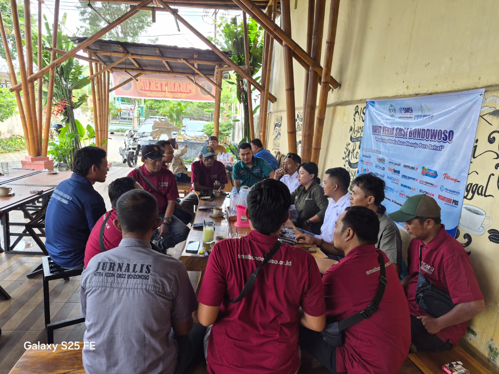 Bondowoso, Nusantarapost.id – Serikat Media Siber Indonesia (SMSI) Kabupaten Bondowoso menggelar Rapat Kerja (Raker) Akhir Tahun sebagai bagian dari agenda konsolidasi organisasi dan penguatan peran pers di era digital. Kegiatan ini mengusung tema “Menghadapi Media Baru Menuju Pers Sehat”, yang dinilai relevan dengan tantangan industri media saat ini. Kegiatan dilaksanakan di Kedai Mbah Tekun. Jumat, (26/12/2025.)