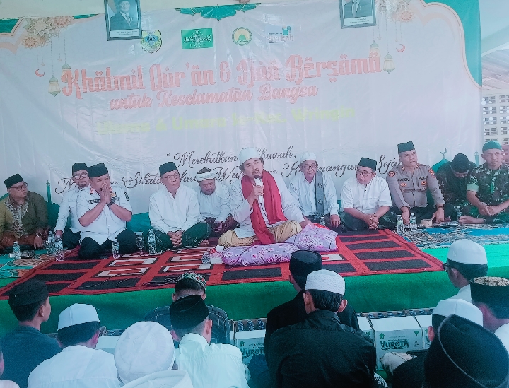 Dalam sambutannya, H. Ahmad Dhafir, S.H. menyampaikan apresiasinya atas terselenggaranya Khotmil Qur’an dan doa bersama yang dilaksanakan secara serentak di 93 titik di wilayah Kecamatan Wringin. Menurutnya, kegiatan tersebut merupakan dawuh para kiai yang sarat makna dan penuh keberkahan.